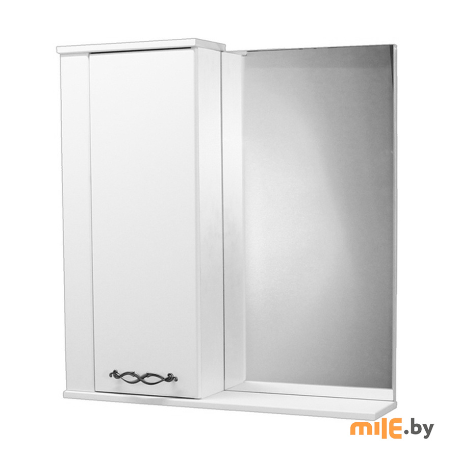 Зеркальное полотно крепится к стенке задней из ЛДСП. За распашной дверью - отделение с двумя переставными стеклянными полочками. Открытая полочка из МДФ пленочного снизу. Отличное дополнение к тумбе под умывальник Джаст 62.700.