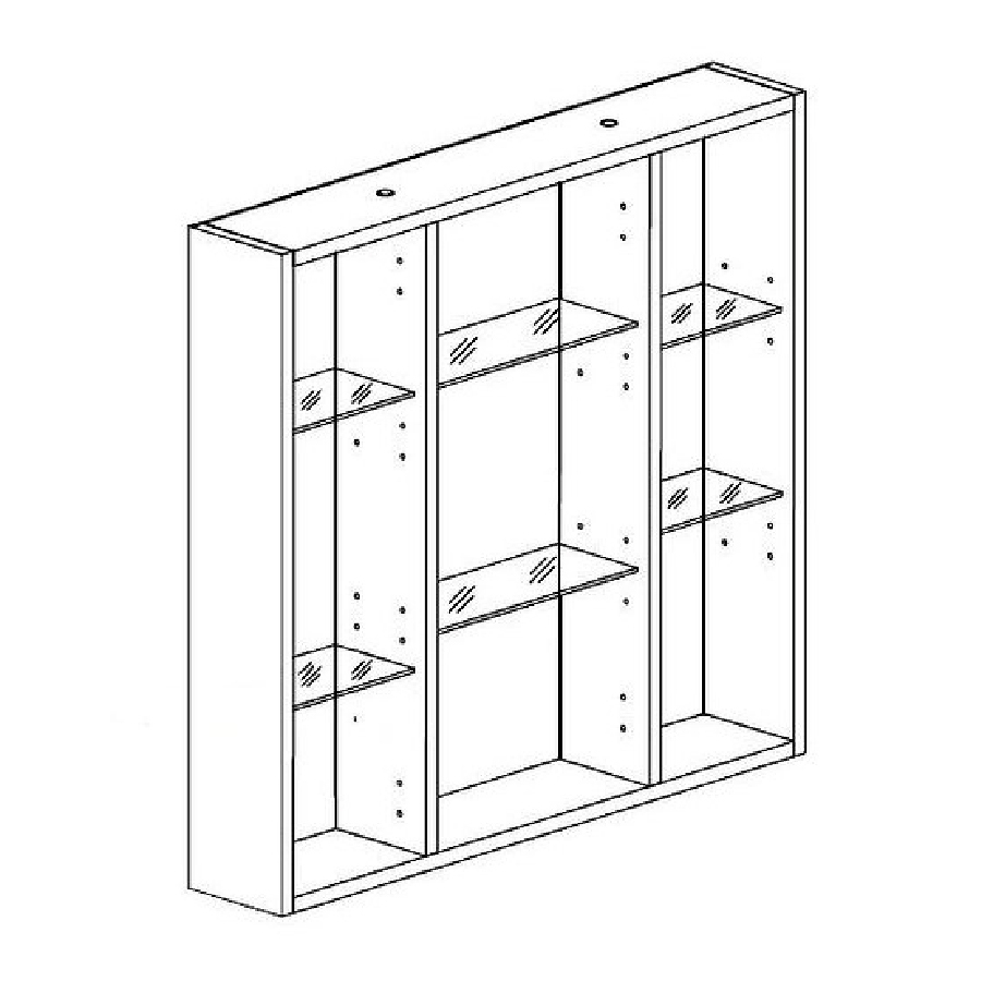 Шкаф навесной имеет три отделения, в каждом отделении по две переставные стеклянные полочки. Открытие дверей: боковая левая - вправо, центральная - вправо, боковая правая - влево.