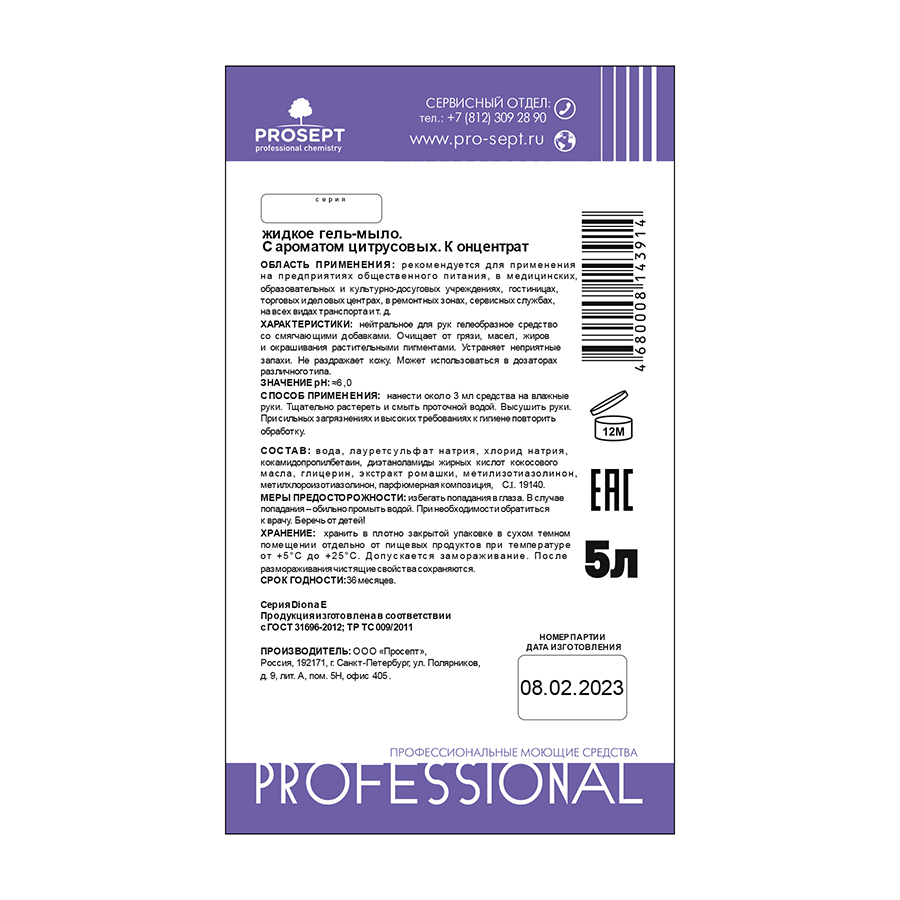 Жидкое гель-мыло эконом-класса Prosept Diona Citrus E с ароматом цитрусовых 5 л