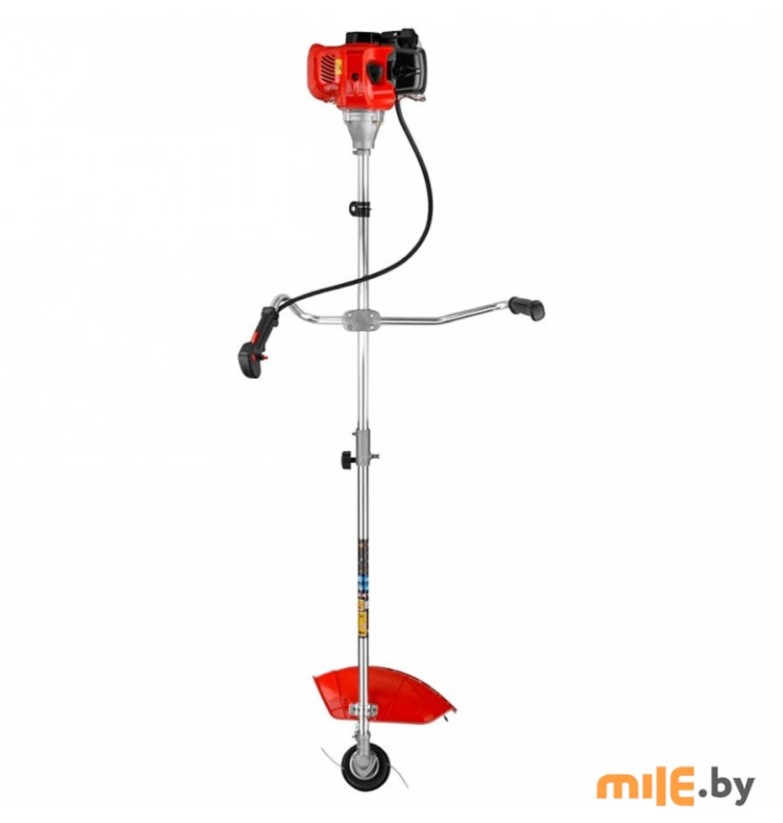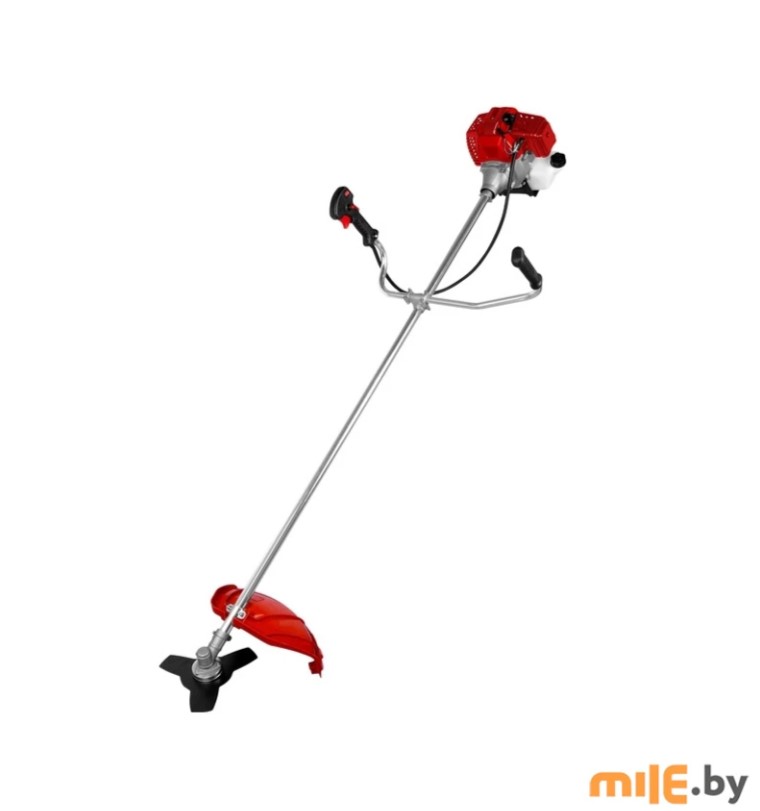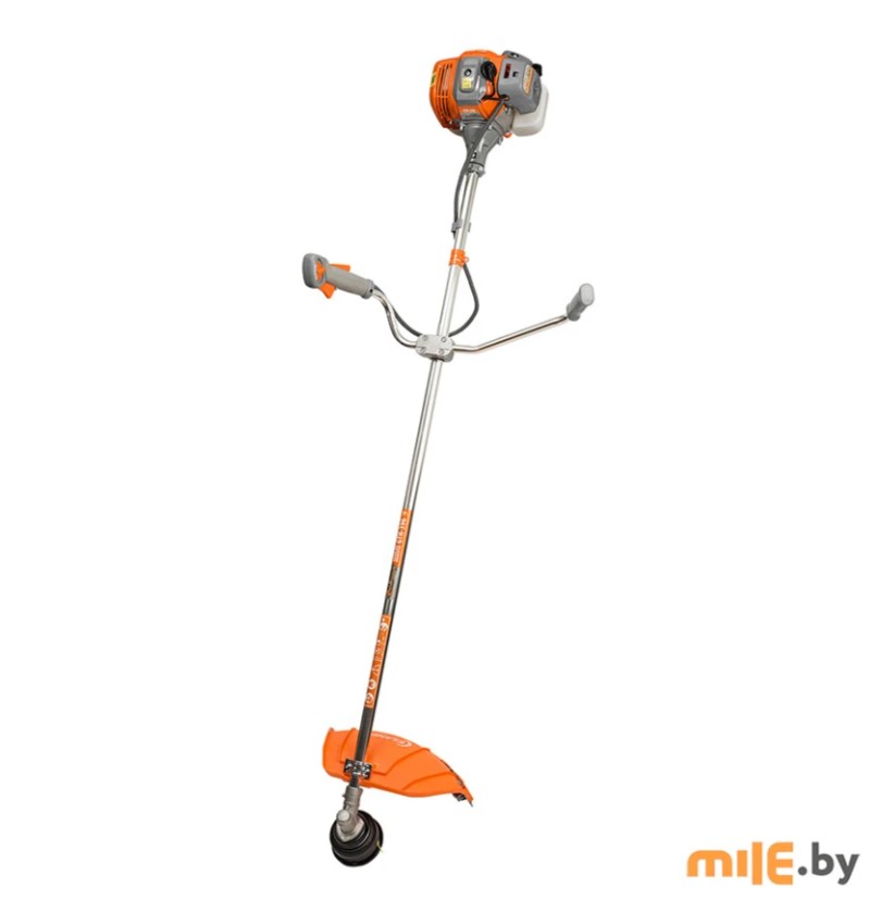 Надёжная мотокоса для тяжёлых условий работы. Подходит для обработки крупных участков, заросших высокой травой, сорняками и мелкими кустарниками.